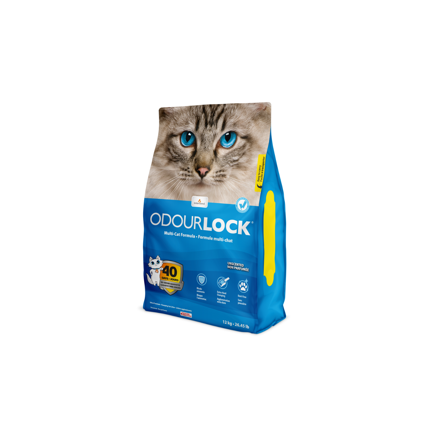 Gracias a su tecnología patentada, nuestra arena OdourLock neutraliza la formación de amoniaco para controlar de forma inigualable los olores de la orina y de las heces. La orina de los gatos no contiene amoniaco en sí, sino que este se forma en la bandeja de arena cuando la orina entra en contacto con el oxígeno y produce bacterias. El amoniaco es el responsable del olor desagradable que tiene la bandeja de arena. Nuestra tecnología se activa cuando entra en contacto con la orina para neutralizar los olores durante más de 40 días. OdourLock es perfecta para un entorno en el que viven varios gatos: tan solo retire los desechos una vez al día para una higiene óptima que les encantará a usted y a sus gatos.