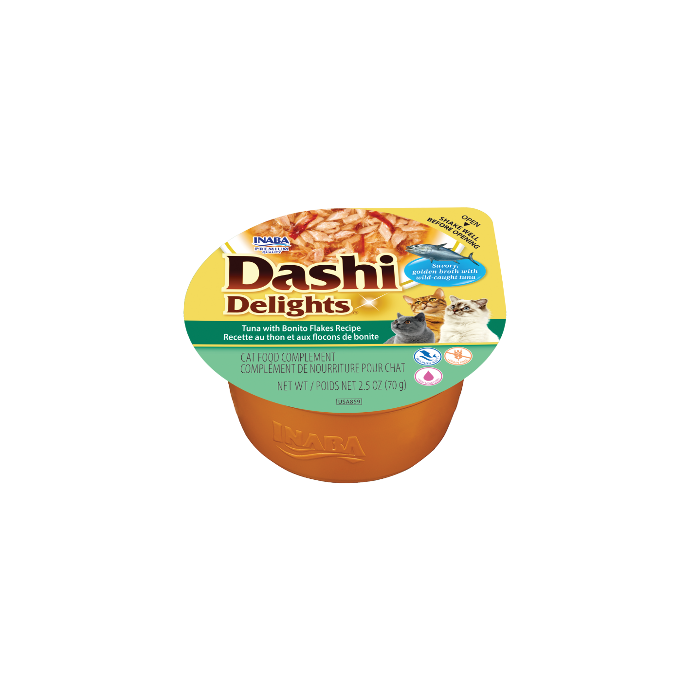 Los Dashi Delights son un alimento complementario gourmet diseñados para enriquecer la alimentación de tu gato con ingredientes de alta calidad, como proteínas de pollo y pescado salvaje, sin granos ni aditivos artificiales. Preparados en un delicado caldo, combinan sabor umami y nutrientes esenciales, incluyendo vitaminas y antioxidantes naturales, ofreciendo una experiencia deliciosa que hidrata y cuida la salud de tu felino. Ideales como complemento o premio, para combinar con su pienso diario y mantenerlos bien hidratados. Conservar en refrigeración tras abrir.