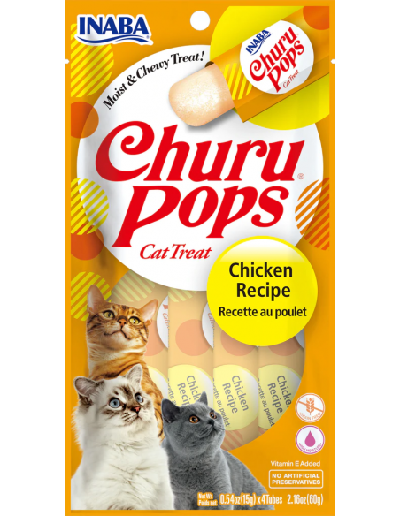 Sabroso snack para gatos producido con atún silvestre o pollo criado en granjas, puro y natural. Disponibles en tres variedades deliciosas, los Churu® Pops tienen el alto contenido de humedad necesario para la salud de los felinos. Simplemente rasgue un tubo y apriételo un poco para alimentar a mano a su felino con estos snacks sin cereales ni conservantes. También puede verterlo en un plato o añadirlo por encima de alimentos húmedos o secos.