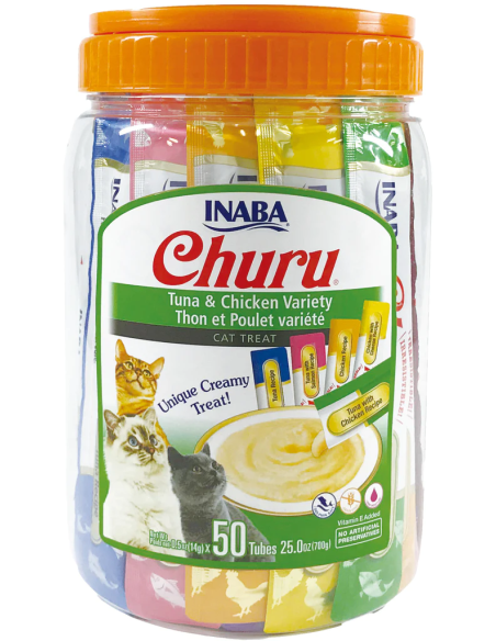 Churu Purée Bote 50 ud. variedades de atún y pollo snack para gatos