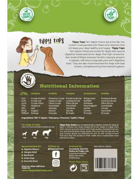 Tippy Taps de Manzana ácida snacks de fruta deshidratada para perros